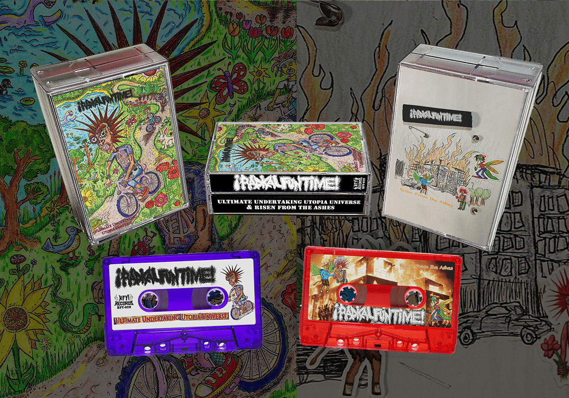 Two new albums from our friends in RADICAL FUN TIME (anarcho peace punk from Minneapolis). "Ultimate Undertaking Utopia Universe" was recorded a while back but the original master tapes were lost before being recovered and eventually released in November. "Risen from the Ashes" are brand new studio recordings from the band's current lineup.